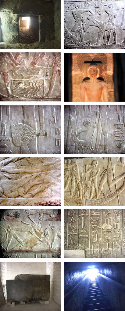 Der große Sphinx von Giseh. Die Barke des Cheops. Die Mastaba des Seshemnufer IV. Die Mastaba des Kar. Die Mastaba des Idu. Die Mastaba des Ptah Hotep. Die Mastaba des Ti. Die Mastaba des Mereruka. Die Mastaba des Kagemni. Die Teti-Pyramide.