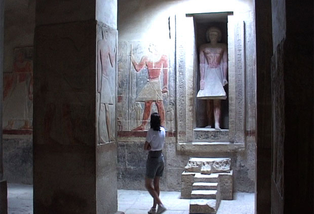 Um die bisher gefundenen großen Holzschiffe des Alten Reichs ranken sich phantasievolle Vorstellungen bezüglich der mythologischen Bedeutung. Ebenso um den großen Sphinx am Fuß des Aufwegs zur Pyramide des Chephren. Wozu dienten die riesigen Pyramidenkomplexe mit ihren Taltempel, Aufwegen, Totentempel, Schiffsgruben und Gräberfelder? Zum Zeitpunkt der Errichtung waren sie durch Seen und Kanäle mit dem Nil verbunden. Luftaufnahmen lassen an gigantische Hafenanlagen erinnern, mit Piers und Docks. Waren es tatsächlich Ausgangsorte zur Unterwelt, für die Reise des Pharaos nebst Gefolge? Der Film dokumentiert die Entdeckung der beiden großen Schiffsgruben im südlichen Hofraum der Cheops-Pyramide im Jahre 1954 und die 10 Jahre währende Ausgrabungsleistung der Archäologen. 651 Holzteile lagen in 13 Schichten nach räumlicher Zuordnung und Funktion sortiert in der 32 Meter langen Grube. Darunter waren Objekte von 16,5 und 22 Meter Länge, die bis zu einer Tonne wogen. Ich dokumentiere die Grube im Bootsmuseum und natürlich die restaurierte Barke Cheops in beeidruckenden Detailaufnahmen sogar die gut erhaltenen Tampen aus Hanf. Ich steige hinab in die Mastabas hoher Würdenträger und großer Wesire der 5. und 6. Dynastie. Ich durchschreite großräumige Grabanlagen mit lichtdurchfluteten Säulenhallen, schmalen Gängen und labyrintartig angeordneten Kulträumen. Staunend verharre ich vor lebensgroßen, lebensecht wirkenden Statuen der Grabinhaber. In wunderschönen farbigen Reliefdarstellungen verfolge ich ihr Leben, ihre Zeit. Ich sehe Fischer und Jäger auf schwankenden Papyrusbooten zu, wie sie Fische fangen in Netzen, Reusen, mit Angelhaken und Speeren, wie sie Nilpferde jagen mit Harpunen und Wildvögel fangen in großen Schlagnetzen. Ich studiere Szenen der Landwirtschaft, der Viehhaltung, des Bootsbaues. Ich staune über die Abbildungen riesiger Segel- und Ruderboote und natürlich über die Opfergaben, die das Totenmahl der Grabinhaber für alle Zeit sicher stellen sollten. Auf den Steinpfosten der Scheintür im Grab des Wesirs Kagemni steht: "Tausendfach Liebe. Tausenfach Zärtlichkeit. Tausende an Jahren Bier". Wie in einem Film verfolge ich eine Gerichtsverhandlung und die Bestrafung der Angeklagten. Ich schaue Jugendlichen zu, beim Spielen, Tanzen, beim Kräftemessen und bei kleinen Mutproben. In der großen Pfeilerhalle des Wesirs und Oberrichters Mereruka scheint mir der durch die Ewigkeit schreitende Grabinhaber geradezu entgegenzutreten. Ich folge ihm in sein Schlafgemach und beobachte wie durch ein Schlüsselloch eine für das damalige Ägypten ungewöhnliche Szene feiner erotischer Ausstrahlung. Ich sehe aber auch, wie sich der Totgeweihte auf die Hände seiner Söhne stützt, bei seinem letzten Weg im Diesseits. Ich krieche mit meiner Kamera durch schmale tief unter der Erde liegende Gänge in Grabkammern und in die mit magischen Texten und Sternen reich verzierte Pyramide des Pharaos Teti. Die Architektur der Sargkammer mit der aufstrebenden Giebeldecke, eine Konstruktion aus dreifach übereinander geschichteten riesigen Steinplatten, ist die Umsetzung des Himmelszeltes, des unendlichen Universums, unter dem die sterbliche Hülle des Königs in dem mächtigen Basaltsarkophag für alle Ewigkeit ruhen sollte. Es kam anders. Räuber durchbrachen alle Hindernisse, so auch den massiven Sarkophagdeckel. Von der Mumie Tetis blieben nur wenige Fragmente zurück. So sehr sich Könige und Begüterte des alten Ägyptens um Unsterblichkeit und Erhalt ihrer Güter über den Tod hinaus bemühten, im für uns Sichtbaren, dem Wenigen, was zurückblieb, scheint der Aufwand vergebens. Und dennoch stützt sich die Zivilisation, so wie wir sie heute als Errungenschaft begreifen, als eine der wesentlichen Quellen auf die altägyptische Kultur.