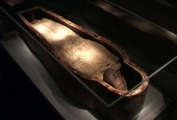 Unter Amenophis III, dem Vater Echnatons, begonnen haben sich große Herrscher der 18. und 19. Dynastie durch den Bau am Luxortempel verewigt. Das sich über 260 Meter ausdehnende sakrale Bauwerk war bis in das 19. Jahrhundert hinein unter Wüstensand begraben. Die frühe Sonne modelliert die einzigartige Architektur und die unzähligen Reliefs auf Säulen und Tempelwänden der für Gottkönige errichteten Anlage besonders eindrucksvoll. Der große Säulenhof, errichtet unter Amenophis III, gilt als schönster Raum Ägyptens. Die Kolossalstatuen des Pharaos Ramses II zählen zu den besterhaltenen des antiken Ägyptens. Das Mumifizierungsmuseum, an der Uferpromenade, bietet einen guten Einblick in den Totenkult der über 4000 Jahre währenden pharaonischen Kultur. Die Mumifizierung und die vielfältigen Bestattungsriten sollten dazu dienen, den Tod zu überwinden. Ein ewiges Leben in einer paradiesartigen anderen Welt, an der Seite der Götter, war das Ziel. Eine Welt hinter den Sternen. Doch der Weg dorthin war voller Gefahren und Hindernisse. Die außerordentlich gut erhaltene körperliche Hülle des hohen Priesters Maserharti wirkt als befände sie sich in einem tiefen Schlaf, während sein Ba, die Seele, sich in den himmlischen Gärten der Götter einer neuen Daseinsform erfreut. Ich lausche den magischen Texten des Totenbuches, die er sprechen musste, auf seiner Reise in das Paradies. Im Wüstengebirge am östlichen Nilufer haben Könige und Begüterte ihre prächtig ausgestatteten Gräber errichten lassen. Eine Reihe imposanter Tempel, “Schlösser der Millionen Jahre” genannt, zeugen vom Anspruch der Könige auf Unsterblichkeit, von der genialen Leistung der Baumeister und Künstler, darüber hinaus vom Zeitgeschehen, von religiösen Riten, Götterbildern und von der Machtposition des jeweiligen Herrschers. Pharaonin Hatschepsut lies ihr imposantes neuzeitlich wirkendes Bauwerk für ihren Vater Thutmosis I und für sich selbst errichten, etwa 1450 vor unserer Zeitrechnung. In der Antike wurde der Tempel “Der Herrlichste unter den Herrlichen” genannt. Das alljährlich stattfindende “Schöne Fest des Wüstentals” zur Erneuerung der göttlichen Qualität des Königs, die göttliche Geburt der Pharaonin und die Handels-Expedition nach Punt sind hier dargestellt. Pabascha war während der 26. Dynastie oberster Diener der Tochter und großen königlichen Gemahlin von Pharao Psammetich I. Seine Villa für die Ewigkeit ist eine sehr große Anlage mit Vestibül, Lichthof und Säulenhalle. An Pfeilern und Wänden hat er in Bildern festhalten lassen, was ihm viel bedeutete und was er beanspruchte in der Zeit danach. Bäume werden gepflanzt, Vögel gejagt, Fische gefangen, Bienen gezüchtet ... Ich sehe wie sein Ba, der Seelenvogel, zu seiner Mumie zurückfindet und schließlich Pabascha im Paradies an der Seite der göttlichen Himmelskuh. Roy war königlicher Schreiber des Pharaos Haremhab während der 18. Dynastie. Sein ewiger Wohnsitz ist klein, dafür aber prächtig ausgeschmückt in leuchtenden Farben. Ich betrachte ihn, in festlicher Kleidung bei Opferszenen an der Seite seiner schönen Gattin, begleitet von Klageweibern und Trauergästen, auf seinem letzten Weg. Beim Begräbnisbankett werden große Zwiebelbündel geboten, von fachlicher Hand zu Kunstwerken arrangiert. Anubis stützt die Mumie während der Mundöffnungszeremonie, damit Roy die Fähigkeit des Atmens zurück erhält, um die Zaubersprüche aus dem Totenbuch aufsagen zu können.