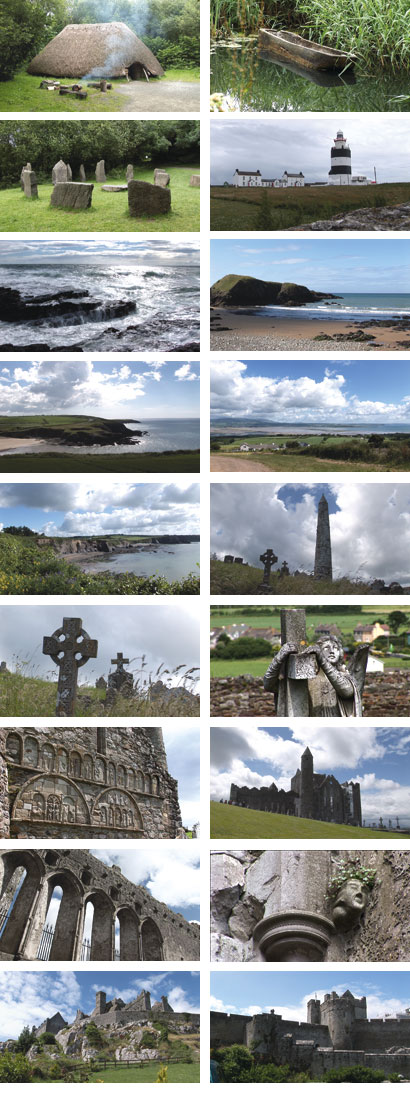 Irish National Heritage Park bei Wexford, Hook Head Lighthouse, Küstenlandschaft bei Waterford, Ardmore Klosterruine, Rock of Cashel, Cahir Castle, Barryscourt Towerhouse, Desmond Castle, Drombeg Stone Circle, Küstenlandschaft bei Baltimore, Mizen Halbinsel, Mizen Head Lighthouse, Küstenlandschaft bei Bantry, Irish Music Session in Kenmare.