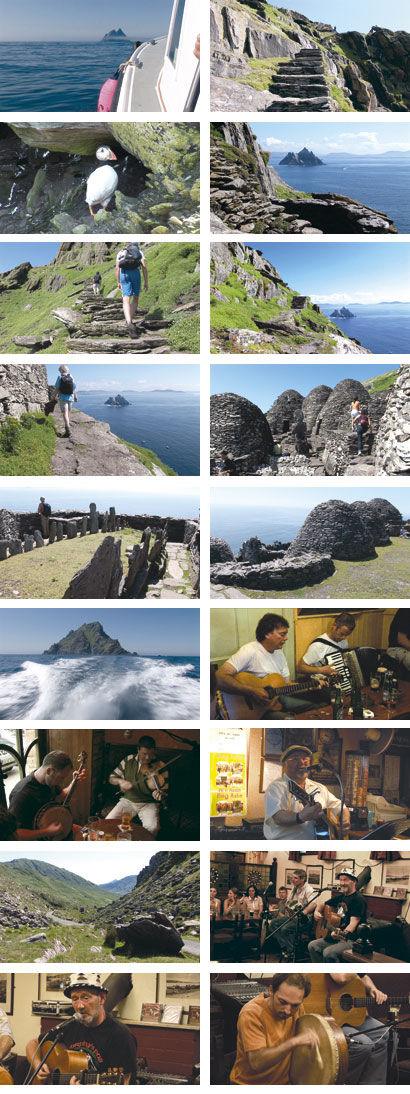 Beara Halbinsel, Teernahillane Ringfort, Dursey Island, Ring of Beara, Ardgroom Steinkreis, Ring of Kerry, Staigue Stone Fort, Loher Stone Fort, Abendstimmung in Portmagee, Skellig Michael, Musikfest in Killarney, Highlands of Kerry, Irish Music Session in Dingle.